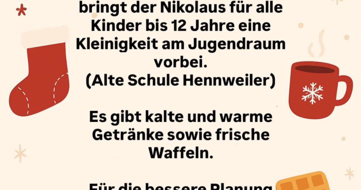 Auf Grund des Hexenfeuers durch den FC Victoria Hennweilers, ist der Wohnmobilstellplatz vom 29.04.25 bis 01.05.25 gesperrt.