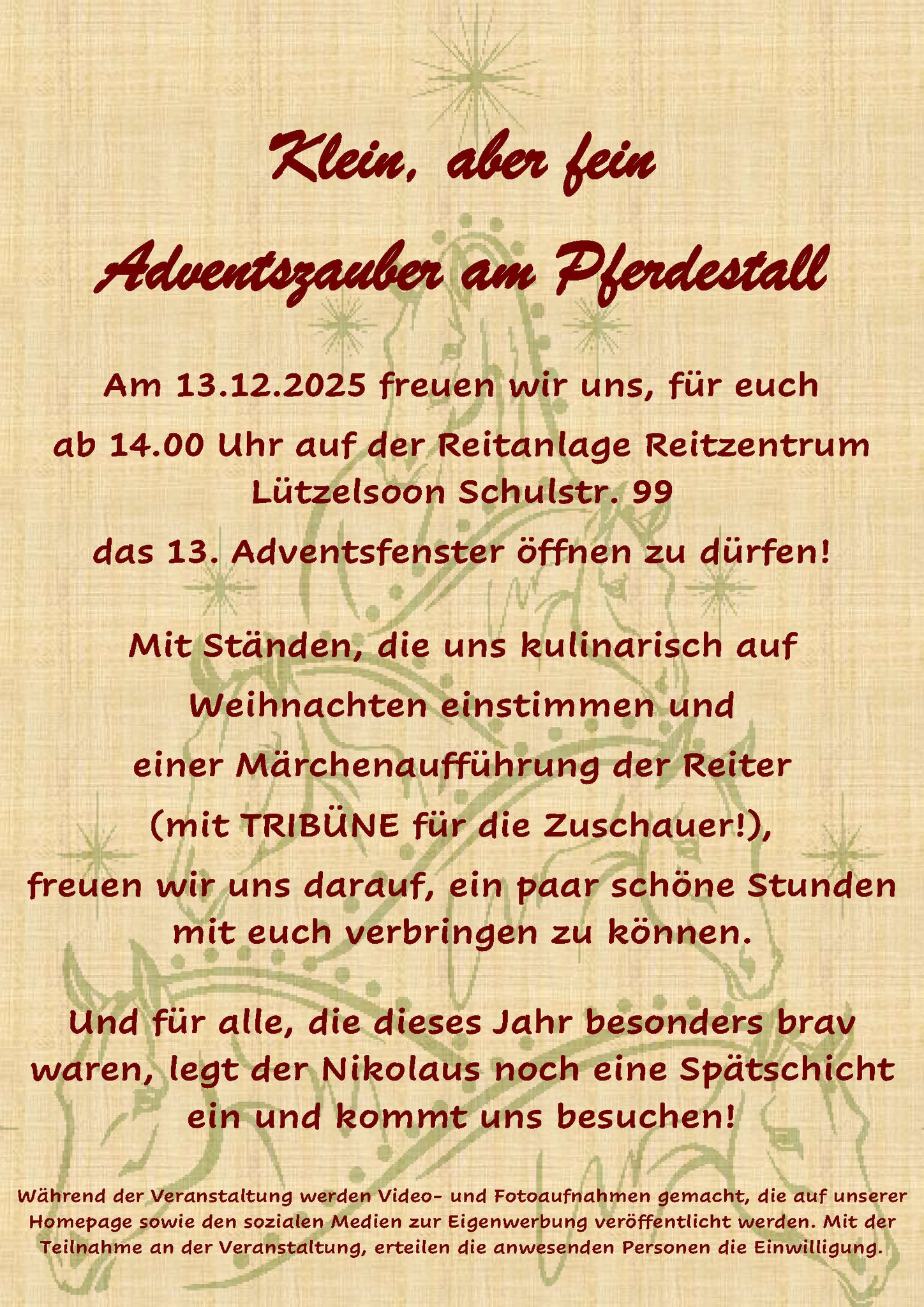 Adventszauber am Pferdestall Veröffentlicht am 7. Dezember 20257. Dezember 2025 von admin Veröffentlicht in Uncategorized.